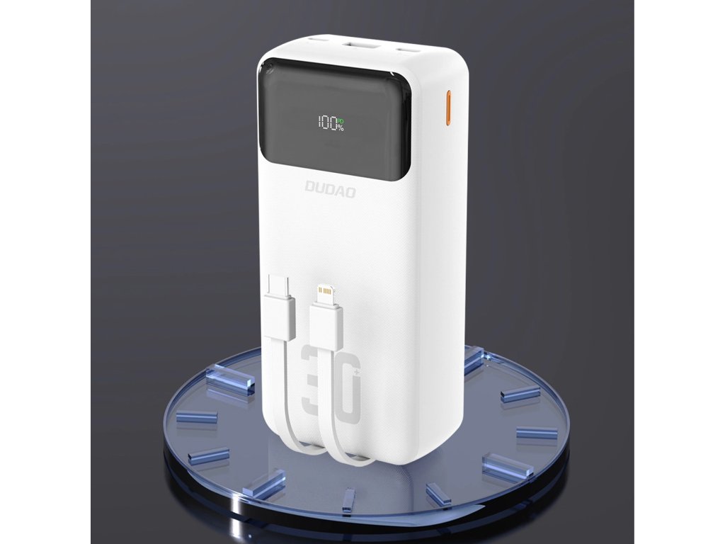 Dudao K15Max PowerBanka 30000mAh / USB-A, USB-C PD / vestavěné kabely / 22,5W - bílá.