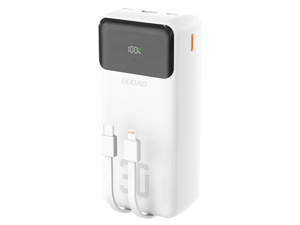 Dudao K15Max PowerBanka 30000mAh / USB-A, USB-C PD / vestavěné kabely / 22,5W / bílá