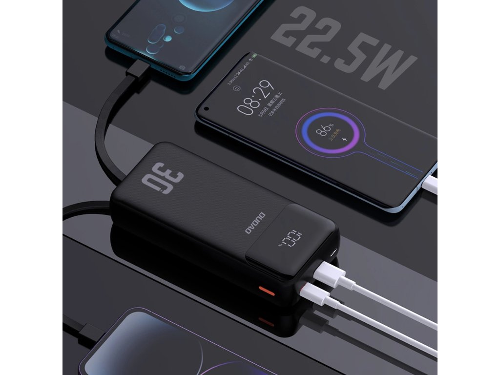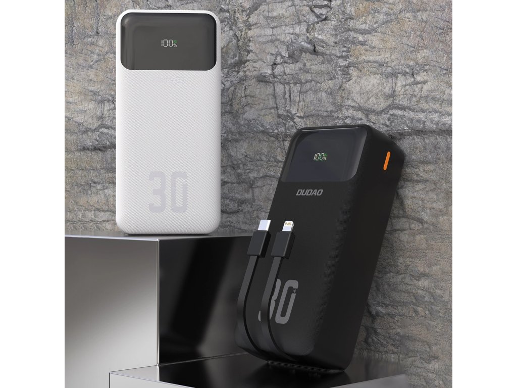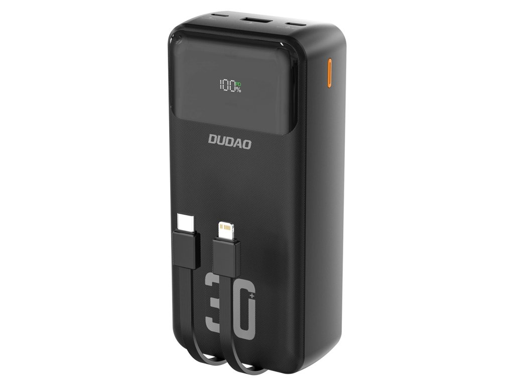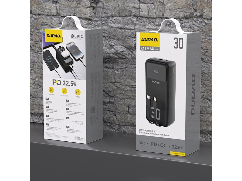 Dudao K15Max PowerBanka 30000mAh / USB-A, USB-C PD / vestavěné kabely / 22,5W / černá