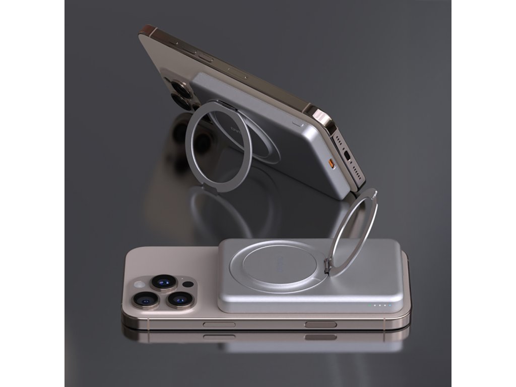 Dudao K28S magnetická MagSafe PowerBanka se stojánkem / stříbrná / 5000mAh