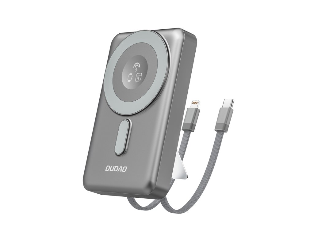 Dudao K29 magnetická MagSafe PowerBanka 3v1 s kabely / pro telefon + hodinky + sluchátka - šedá.