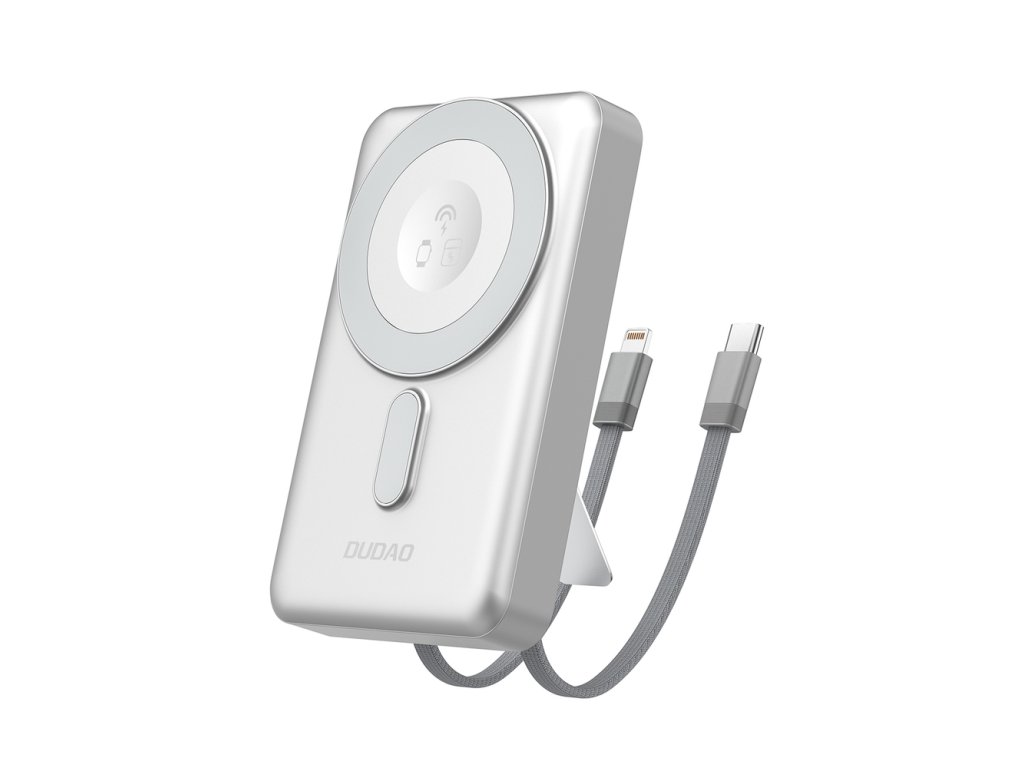Dudao K29 magnetická MagSafe PowerBanka 3v1 s kabely / pro telefon + hodinky + sluchátka - stříbrná.