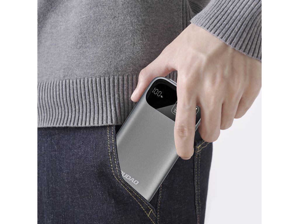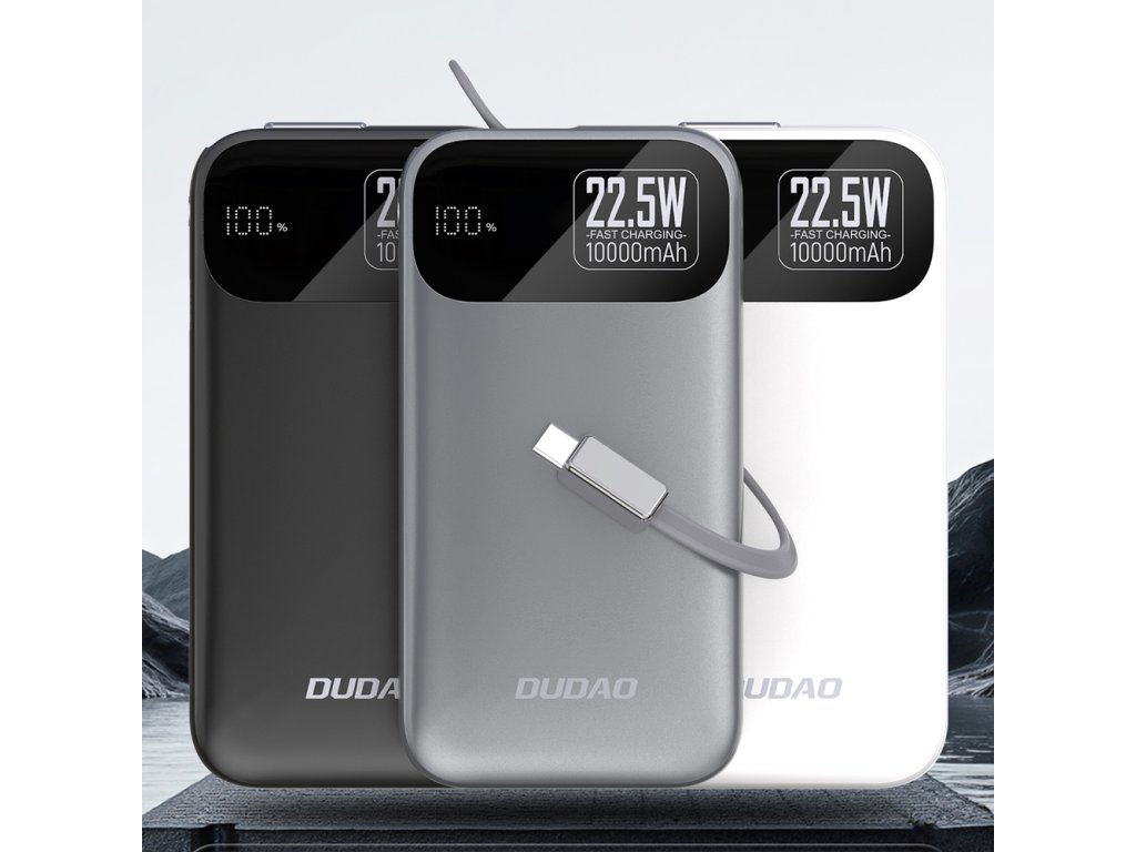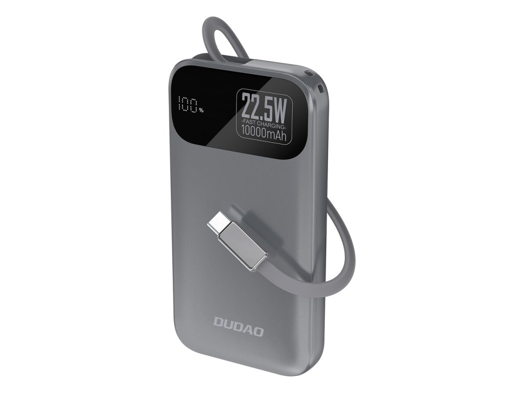 Dudao K31 PowerBanka 10000mAh / USB-C + vestavěný kabel USB-C / 22,5W / PD, QC / šedá