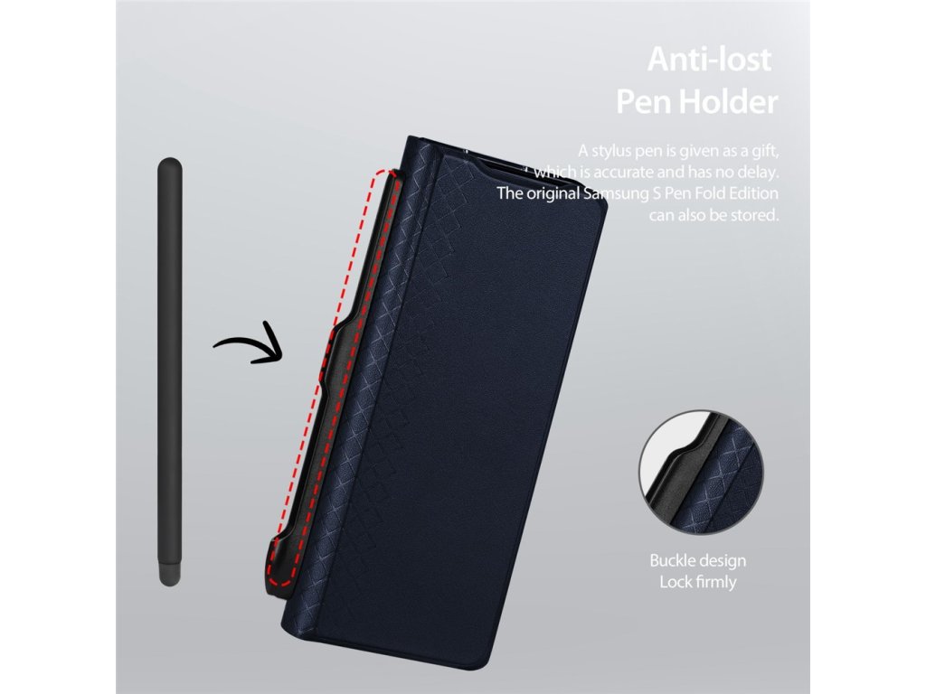 Pouzdro Dux Ducis Brill je vyrobeno z ekokůže a polykarbonátu. Výřezy pro porty, reproduktory a fotoaparát zaručují plný přístup ke všem funkcím zařízení. Pouzdro Dux Ducis Brill vypadá velmi stylově! Toto elegantní, tenké pouzdro zajišťuje pohodlí při používání a perfektně padne do ruky. Inovovaná verze s vestavěným úchytem pro S Pen Samsung Fold Edition.