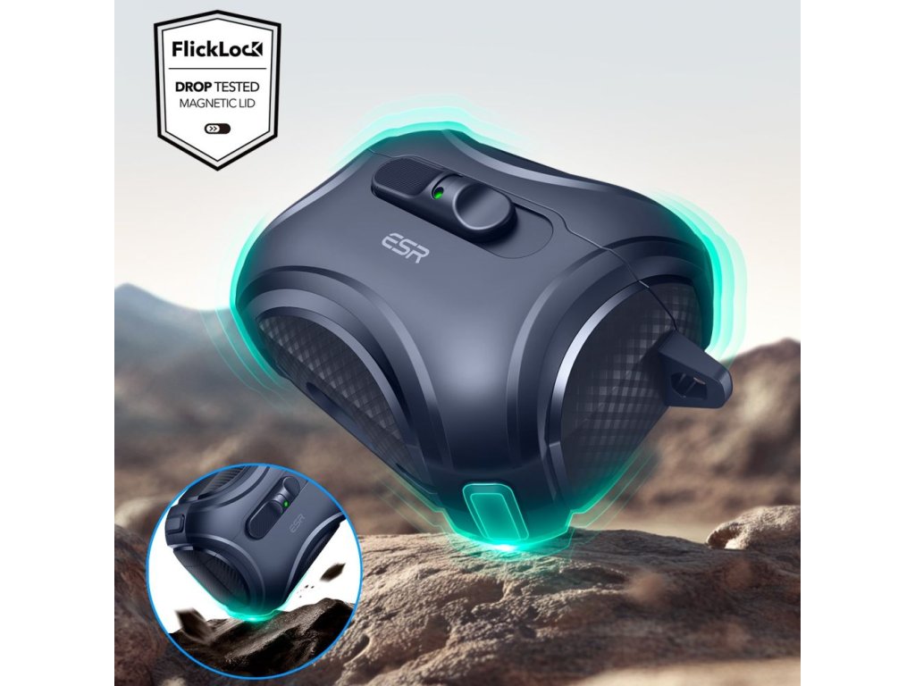 ESR Cyber FlickLock je prémiové ochranné pouzdro navržené pro maximální bezpečnost a pohodlí při každodenním používání vašich bezdrátových sluchátek. Kombinuje inovativní uzamykací mechanismus, vysokou odolnost a plnou kompatibilitu s MagSafe nabíjením - ideální řešení pro uživatele, kteří chtějí mít své zařízení dokonale chráněné.