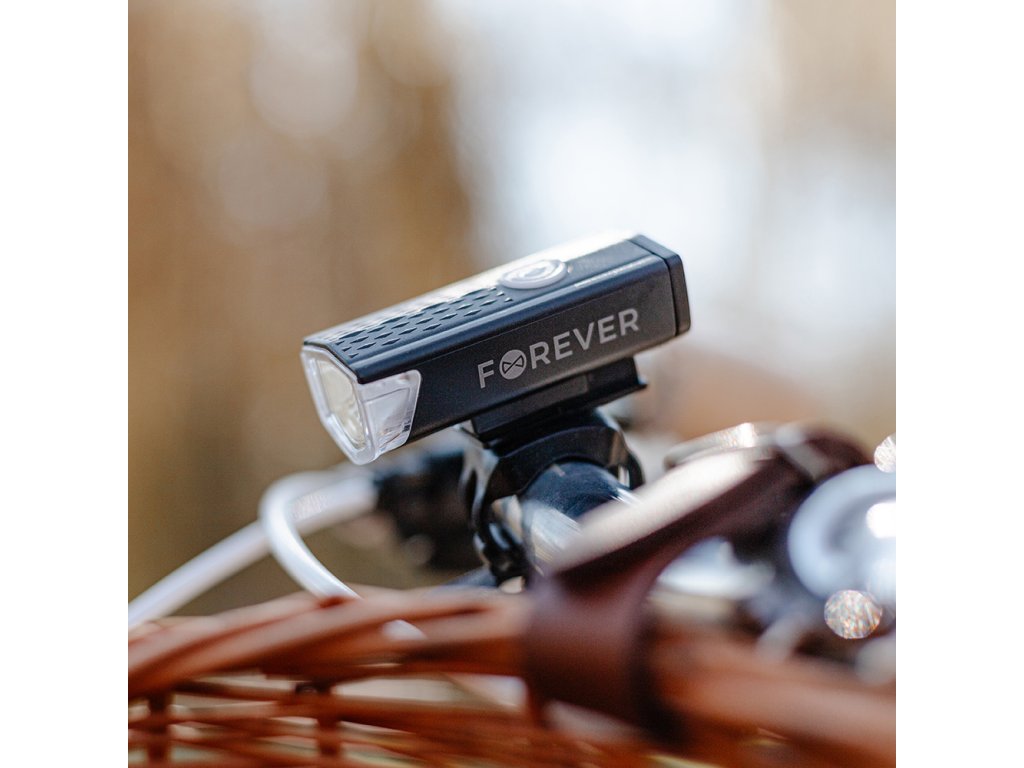 Forever BASIC BLG-100 sada světel na kolo obsahuje přední světlo, zadní světlo a univerzální nabíjecí kabel.