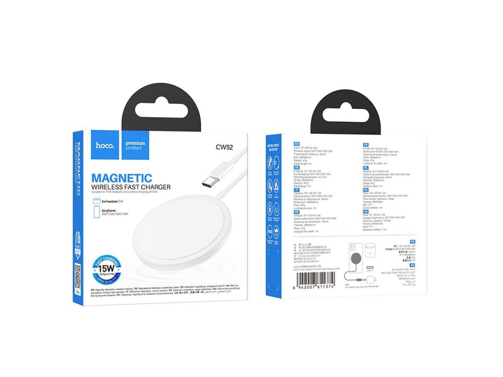 Hoco CW52 bezdrátová nabíječka 15W / MagSafe - bílá.