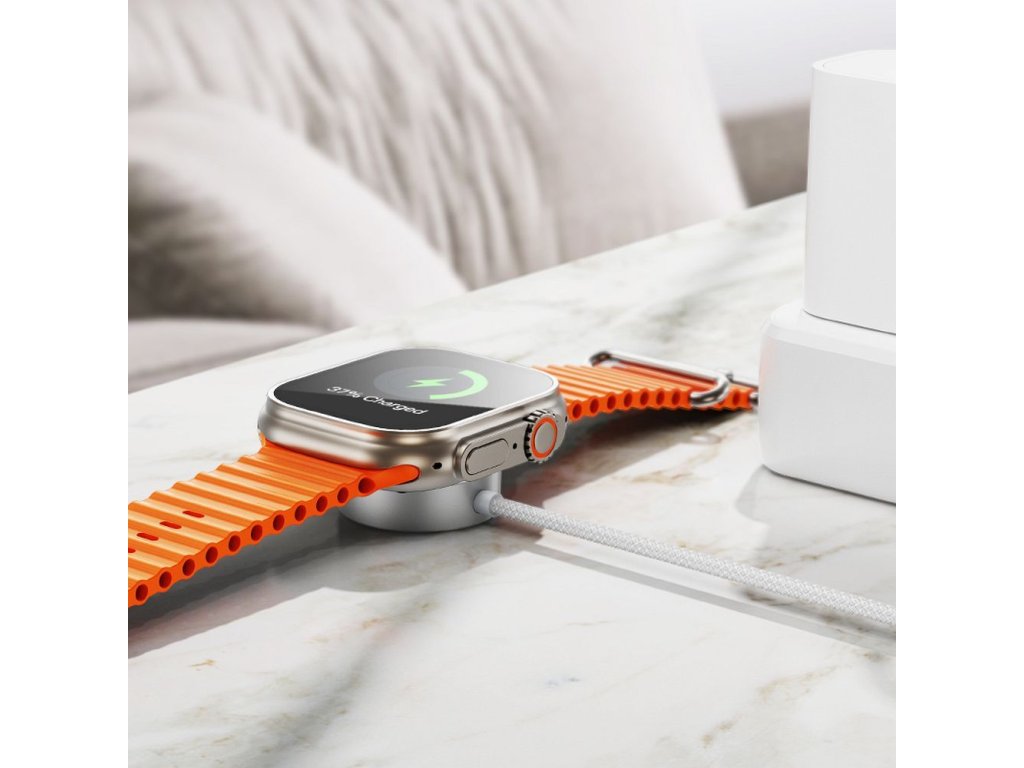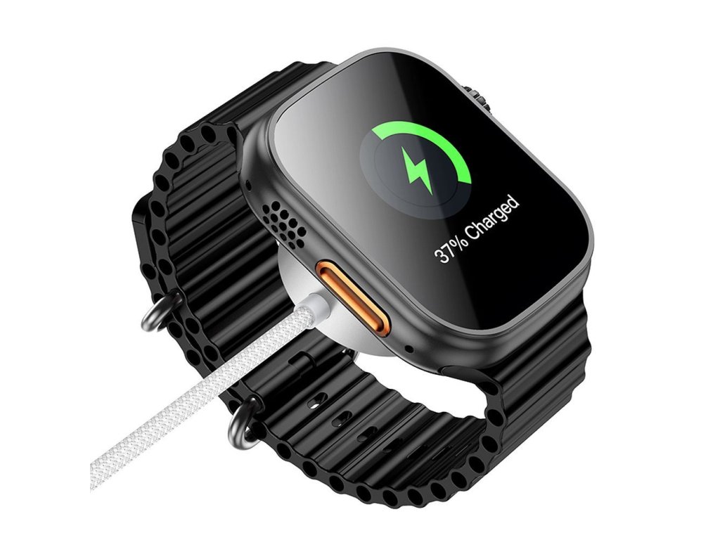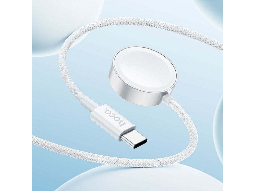 Indukční nabíječka / kabel Hoco CW59, která umožňuje bezdrátové nabíjení chytrých hodinek Apple Watch a Samsung Galaxy Watch.