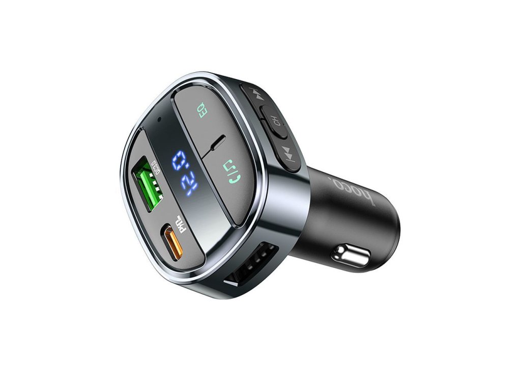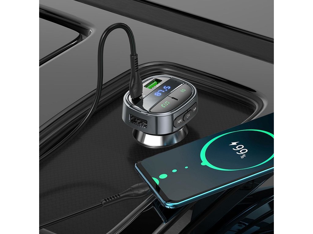 Hoco E70 / bluetooth FM transmitter / USB-C PD 30W / USB QC 3.0 - černý.