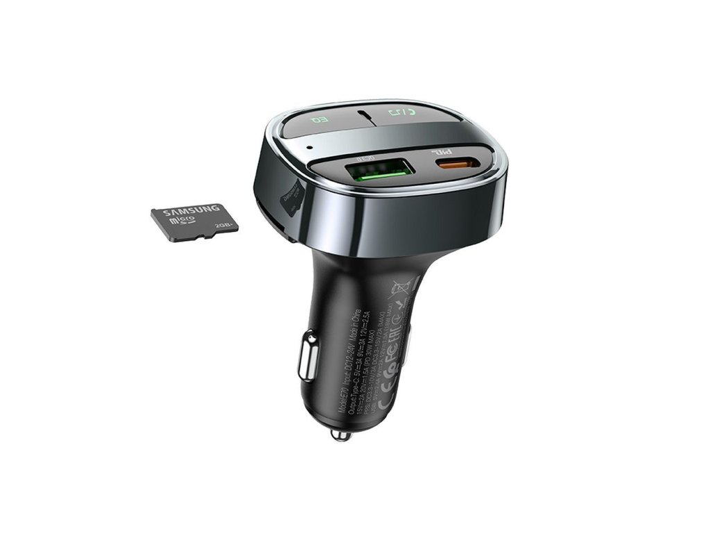 Hoco E70 / bluetooth FM transmitter / USB-C PD 30W / USB QC 3.0 / černý