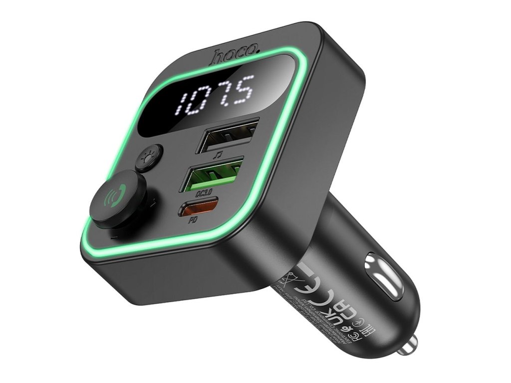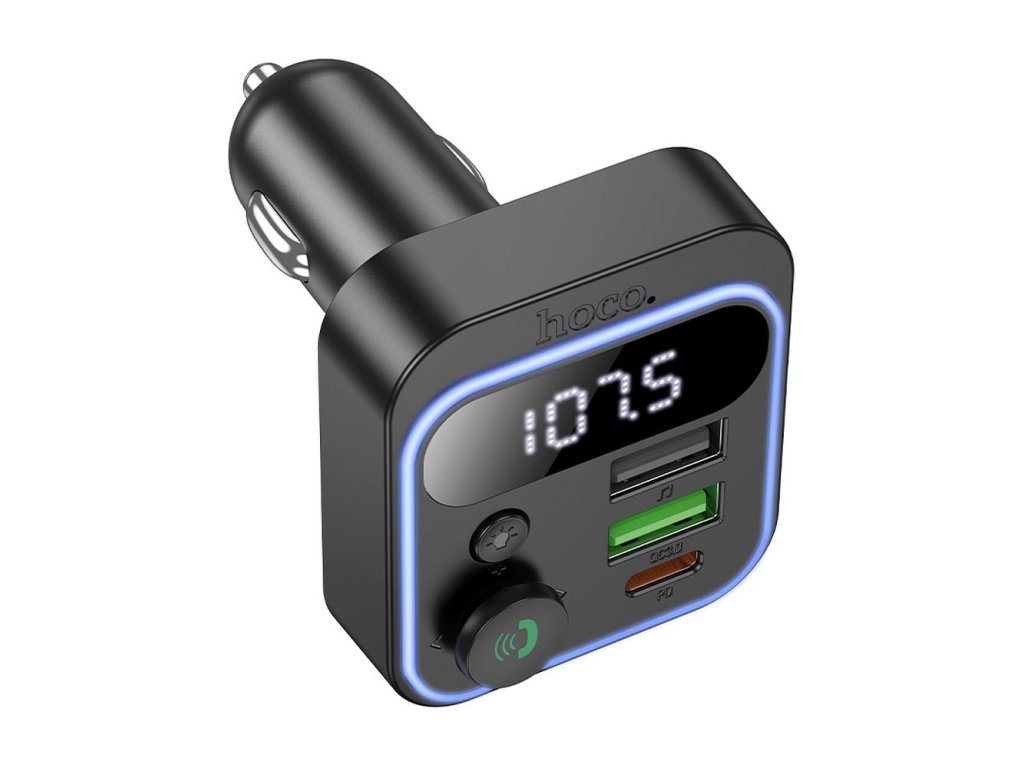 Hoco E85 / bluetooth FM transmitter / USB-C PD 20W / USB QC 3.0 - černý.