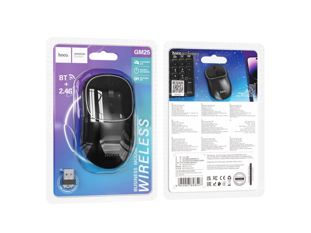 Hoco GM25 bezdrátová / bluetooth myš k počítači / 2.4GHz / DPI 1600 / černá