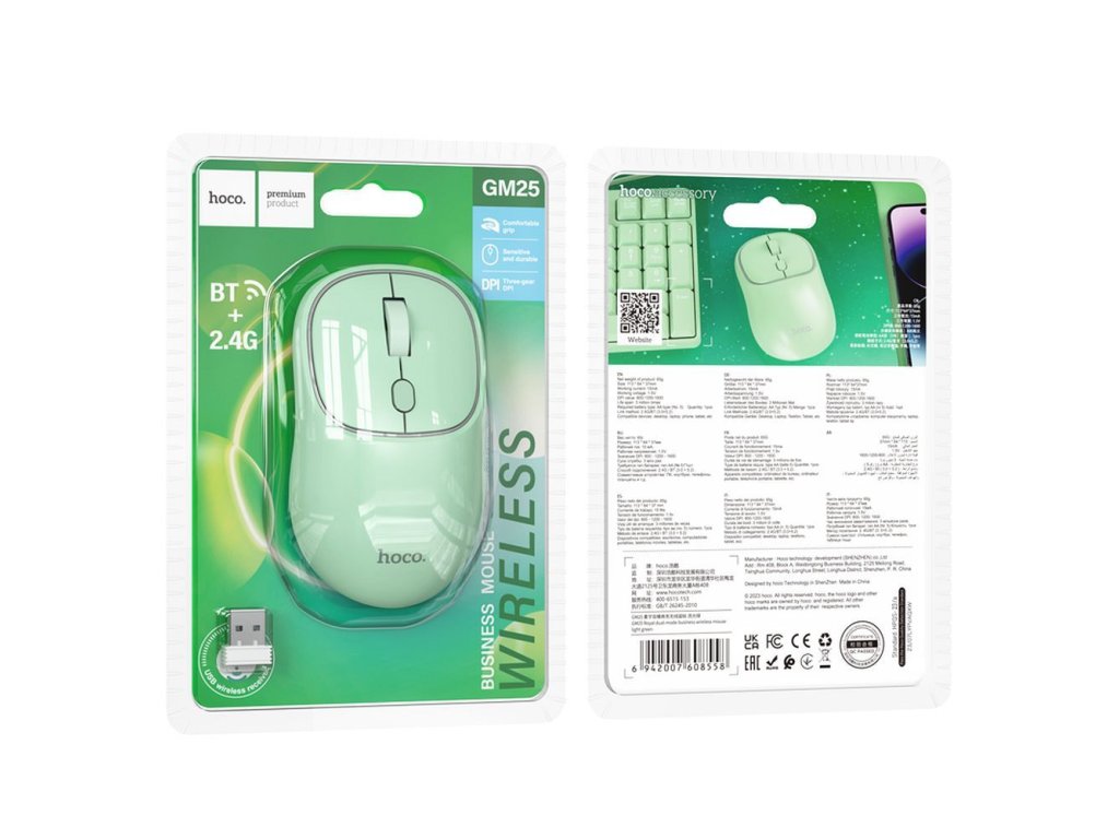 Hoco GM25 bezdrátová / bluetooth myš k počítači / 2.4GHz / DPI 1600 / zelená