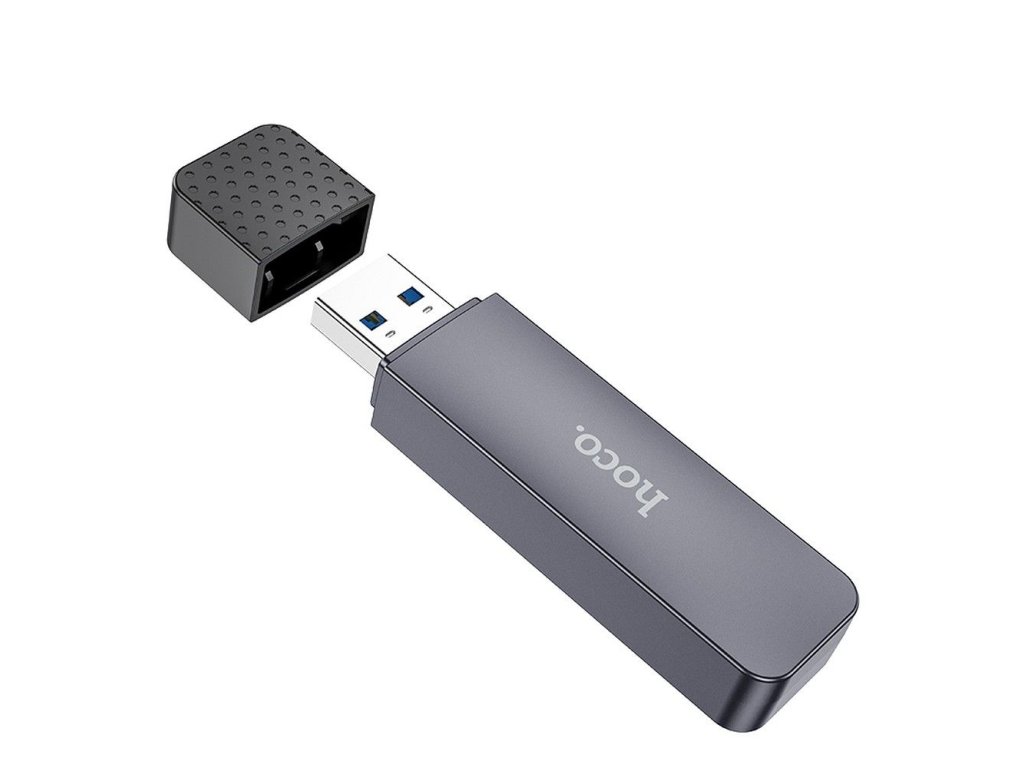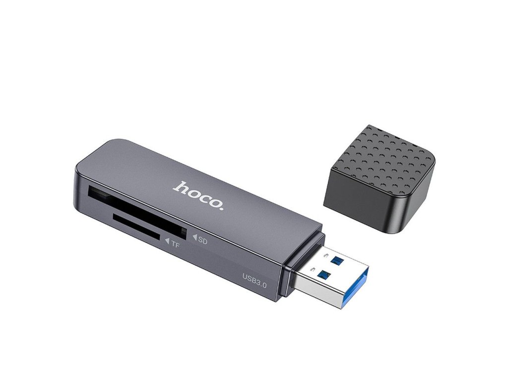 Čtečka paměťových karet s konektorem USB-A od společnosti Hoco. Podporuje SD a Micro SD karty