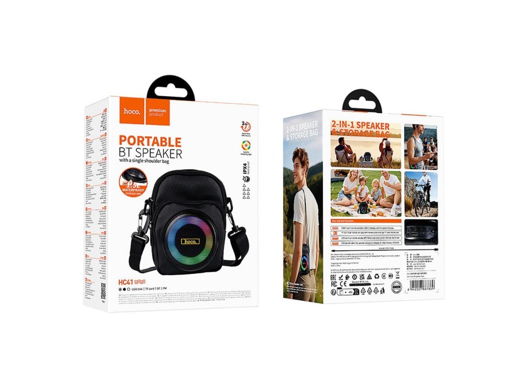 - Model Hoco HC41 je navržen pro uživatele, kteří chtějí mít hudbu vždy po ruce. Konstrukce v podobě tašky umožňuje pohodlně přenášet drobnosti a zároveň si užívat zvuk bez nutnosti nosit další zařízení. Lehká a kompaktní stavba činí reproduktor ideálním pro použití na cestách, na pikniku či při procházkách.