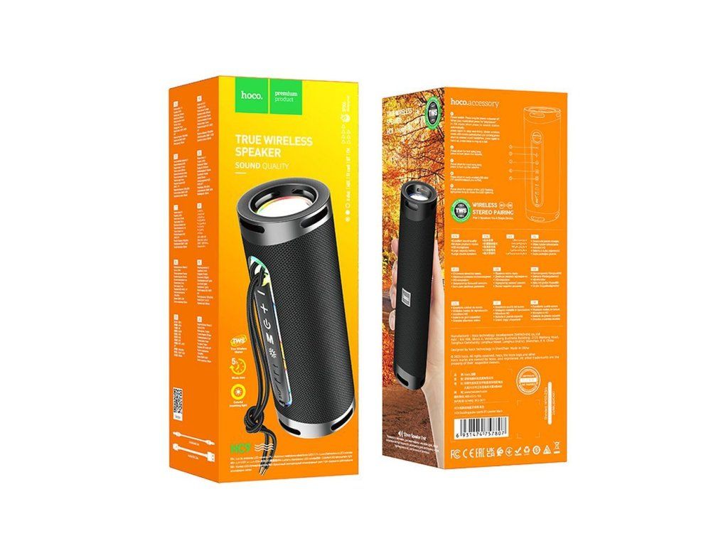 Hoco HC9 je perfektní volba pro ty, kteří hledají stylový a všestranný přenosný reproduktor s efektním světelným podkresem, výkonným zvukem a spolehlivým výkonem pro domácí použití i venkovní akce. Kombinace kvalitního zvuku, dlouhé výdrže baterie a působivého designu z něj činí ideálního společníka pro každou příležitost.