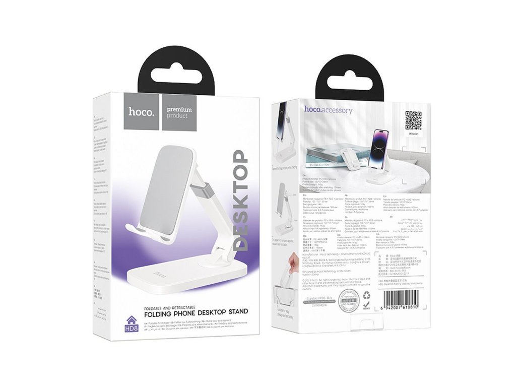 Funkční a praktický stolní držák na telefon od značky Hoco HD8. Mimořádně užitečné při používání smartphonu, například při sledování filmů nebo videohovorech. Skládací design usnadňuje skladování, když se produkt nepoužívá a také se snadno transportuje. Díky kompaktním rozměrům lze produkt snadno sbalit na cesty.
