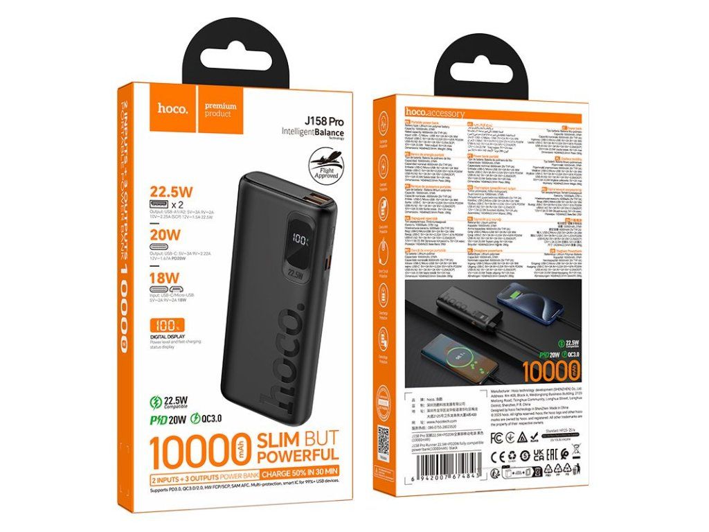 Hoco J158 Pro powerbanka / 10000mAh / 22,5W / 2x USB-A / QC / PD, černá