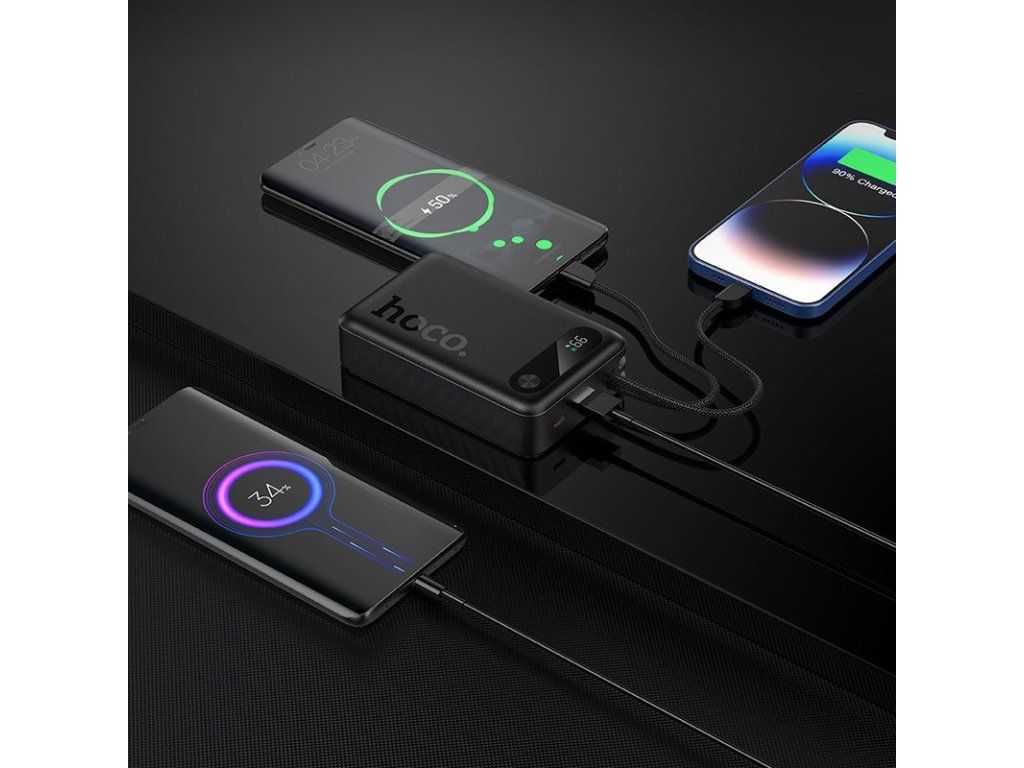 Hoco J171A powerbanka / 20000mAh / 22,5W / USB-C + USB-A + vestavěné kabely, černá