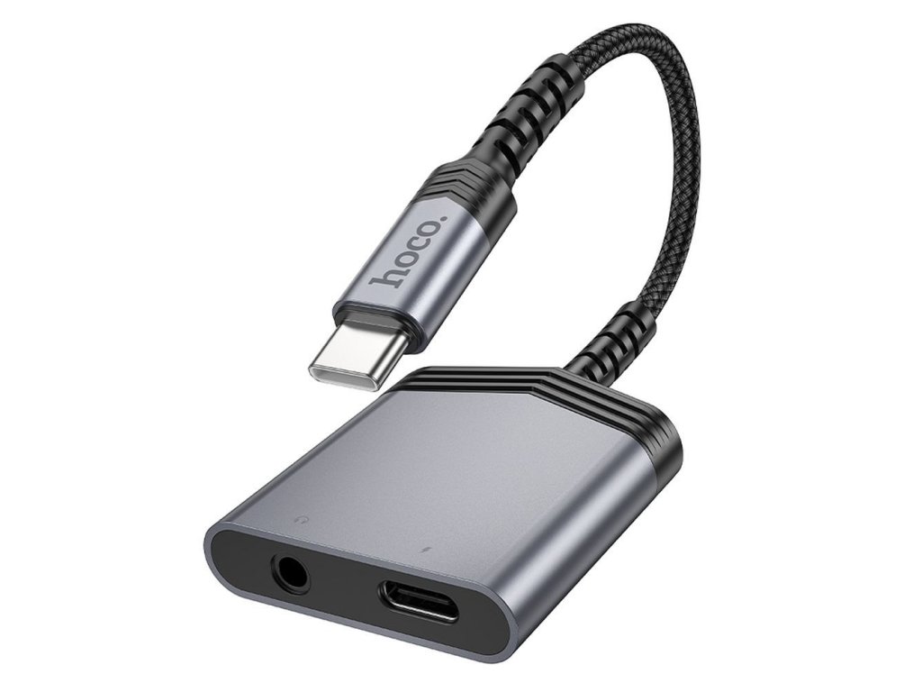Hoco LS39 adaptér 2v1 USB-C / USB-C + 3,5mm jack / 27W - šedá.