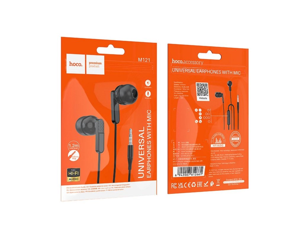 HOCO M121 handsfree sluchátka / iOS + Android / 3,5mm jack / černé