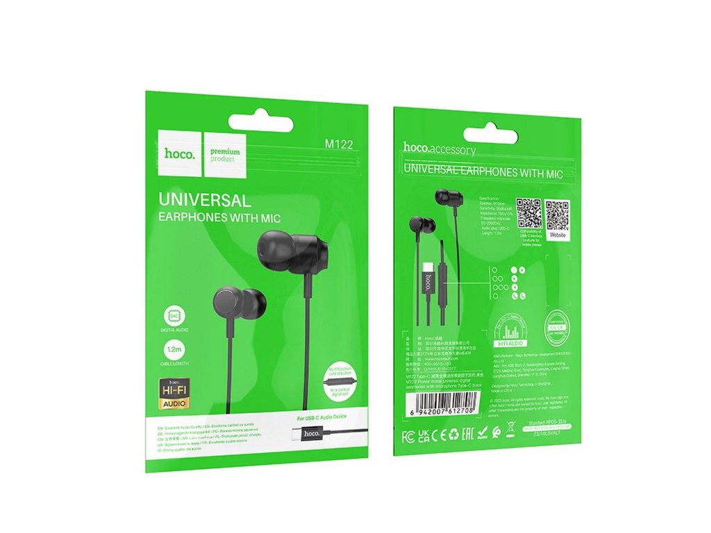 HOCO M122 handsfree sluchátka s mikrofonem / USB-C / 1,2m / černé