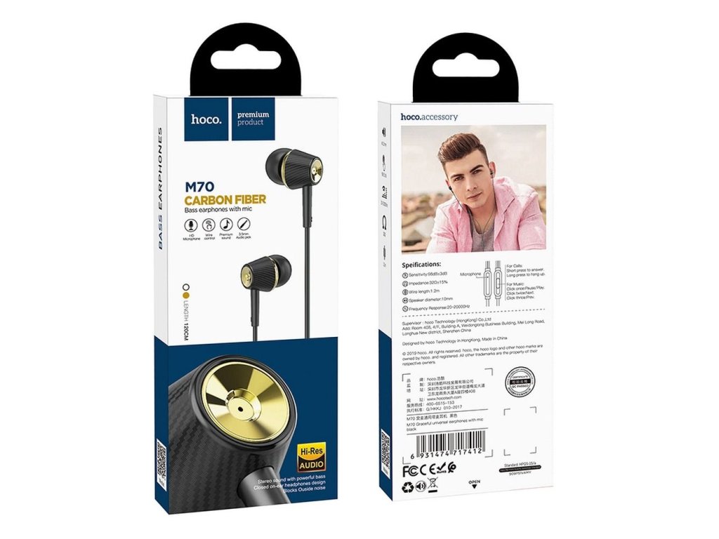 HOCO M70 handsfree sluchátka / iOS + Android / 3,5mm jack / černé
