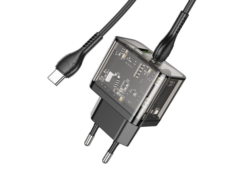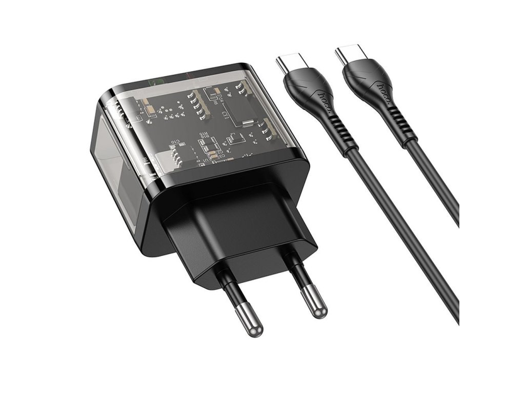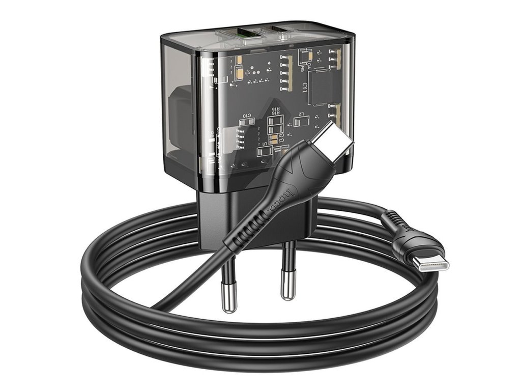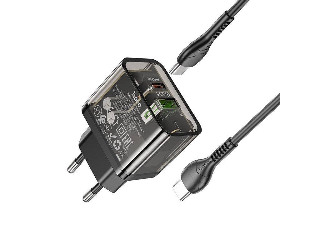 Hoco N34 nabíječka do sítě s výstupem USB-C + USB-A / 20W / kabel USB-C/USB-C / černá