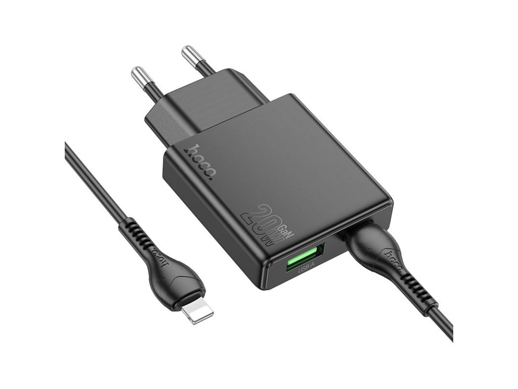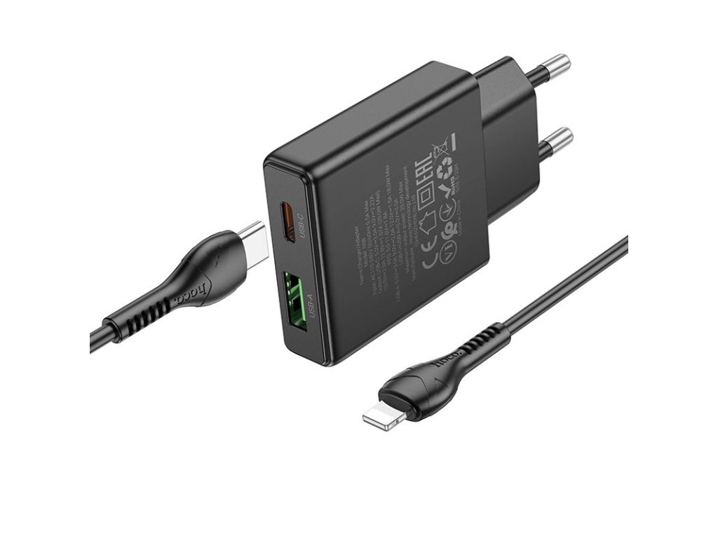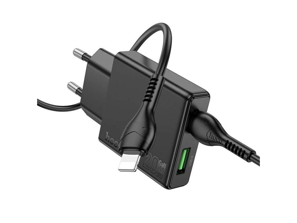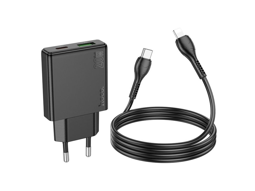 Hoco N38 nabíječka do sítě s výstupem USB-A + USB-C / 20W / kabel USB-C/Apple / černá