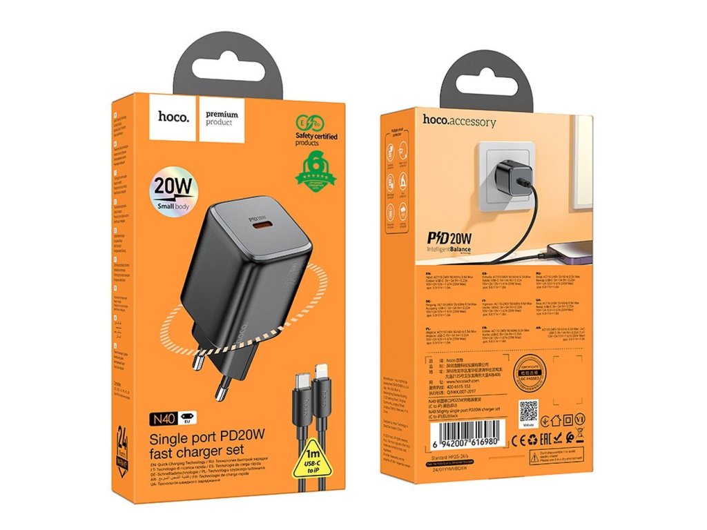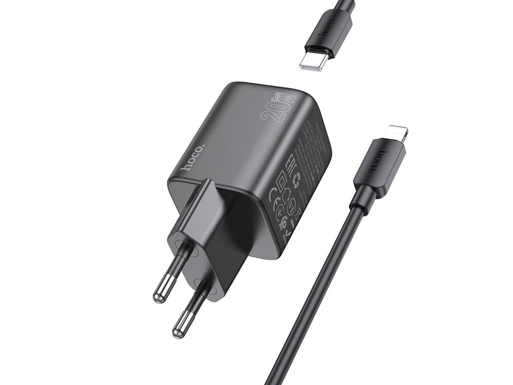 Hoco N40 nabíječka do sítě USB-C PD / QC / 20W + kabel USB-C / Apple Lightning černá