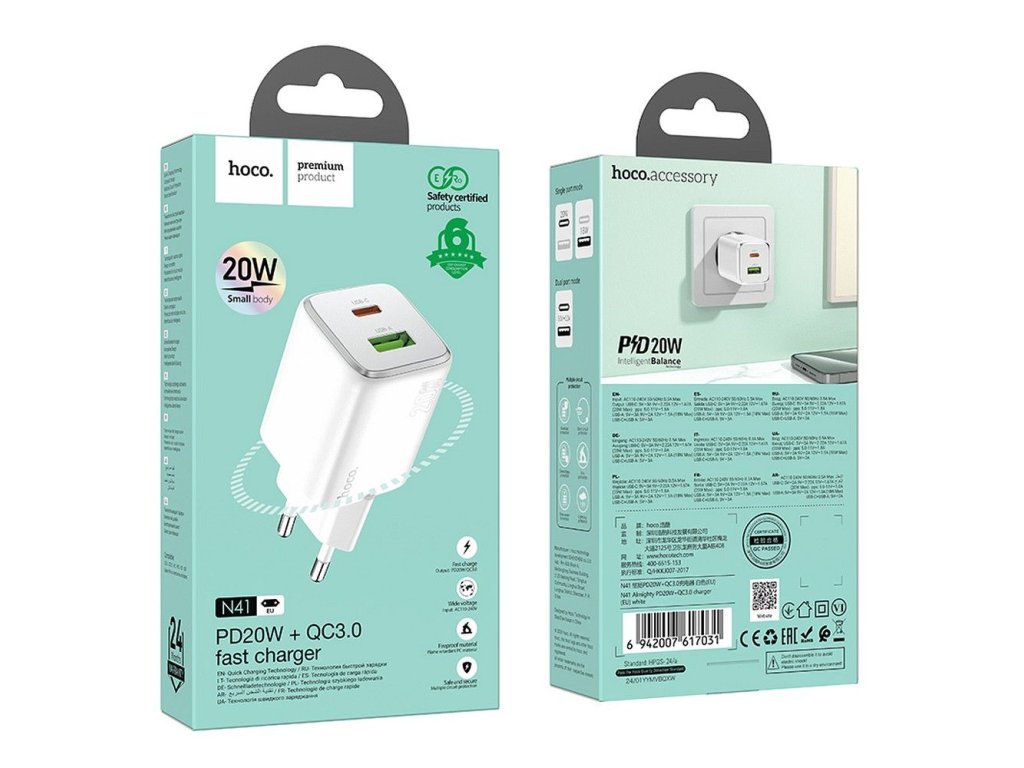 Hoco N41 nabíječka do sítě USB-A + USB-C PD, QC / 3A / 20W bílá