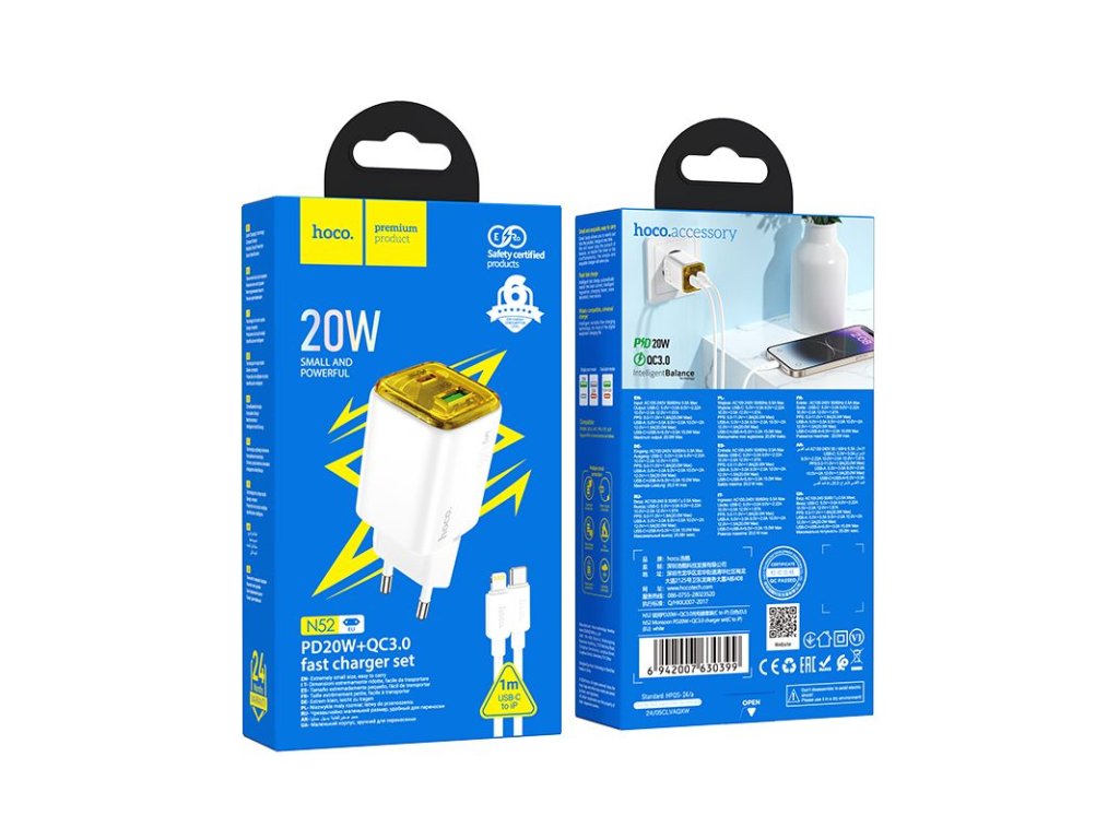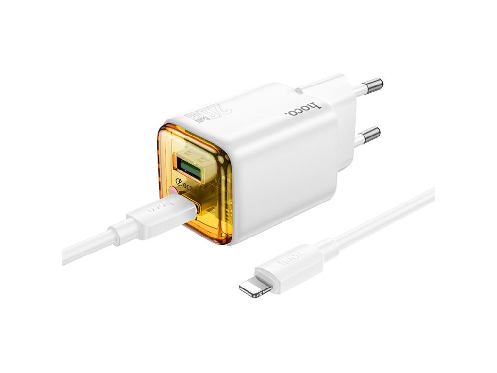 Hoco N52 nabíječka do sítě s výstupem USB-C + USB-A / 20W / kabel USB-C / Apple Lightning - bílá.