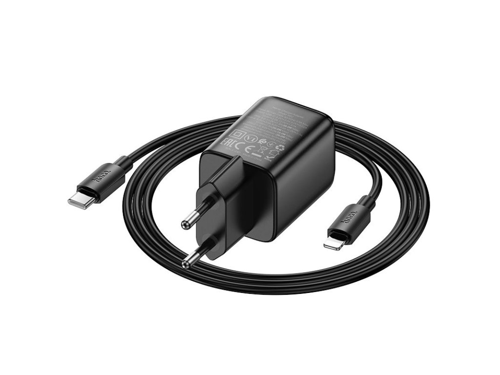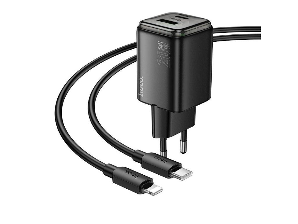 Hoco N52 nabíječka do sítě s výstupem USB-C + USB-A / 20W / kabel USB-C / Apple Lightning - černá.