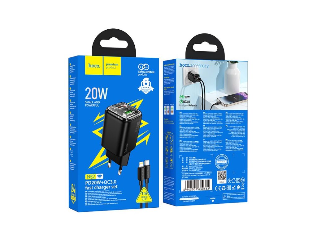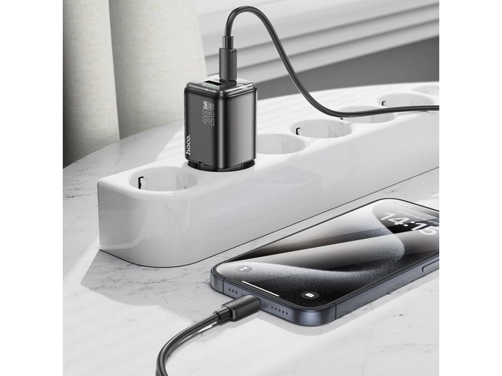 Hoco N52 nabíječka do sítě s výstupem USB-C + USB-A / 20W / kabel USB-C / Apple / černá