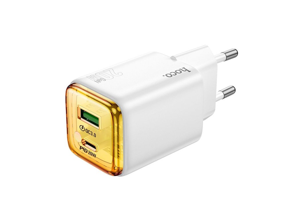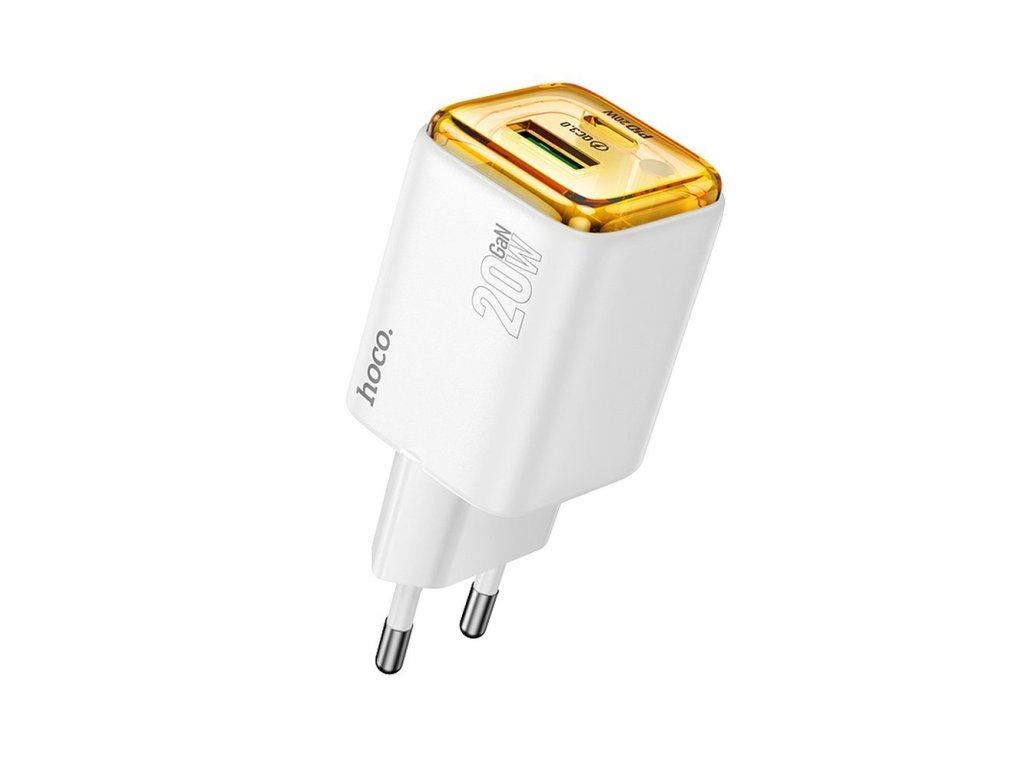 Hoco N52 nabíječka do sítě s výstupem USB-C + USB-A / 20W / QC 3.0, PD, AFC, FCP - bílá.