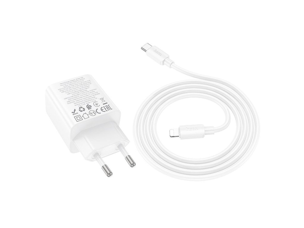 Hoco N56 nabíječka do sítě s výstupem 2x USB-C + 2x USB-A / PD / QC 3.0 / 30W + kabel USB-C / Apple Lightning - bílá.