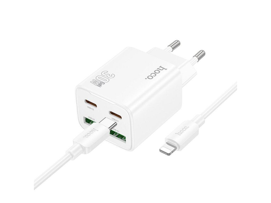 Hoco N56 nabíječka do sítě s výstupem 2x USB-C, 2x USB-A, 30W kabel USB-C / Apple bílá