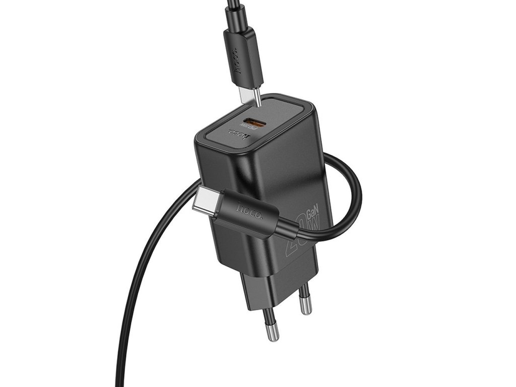 Hoco N60 rychlonabíječka do sítě USB-C / 20W / PD, QC 3.0, FCP, AFC / GaN / kabel USB-C/USB-C - černá.