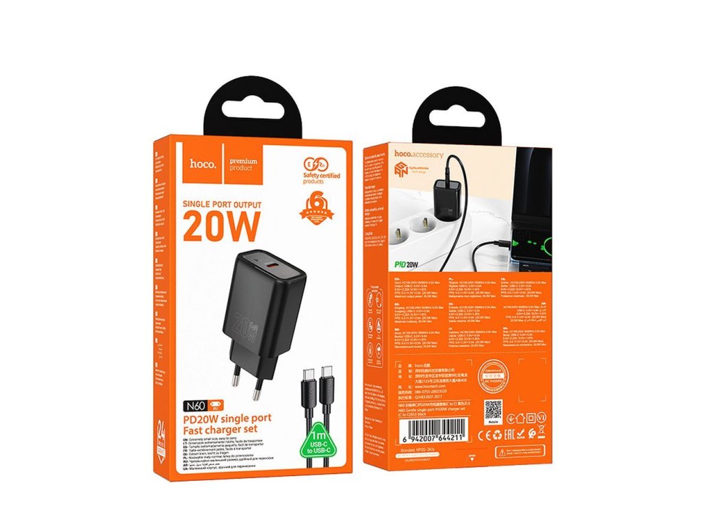 Hoco N60 rychlonabíječka USB-C / 20W / PD, QC 3.0, FCP, AFC / kabel USB-C/USB-C černá