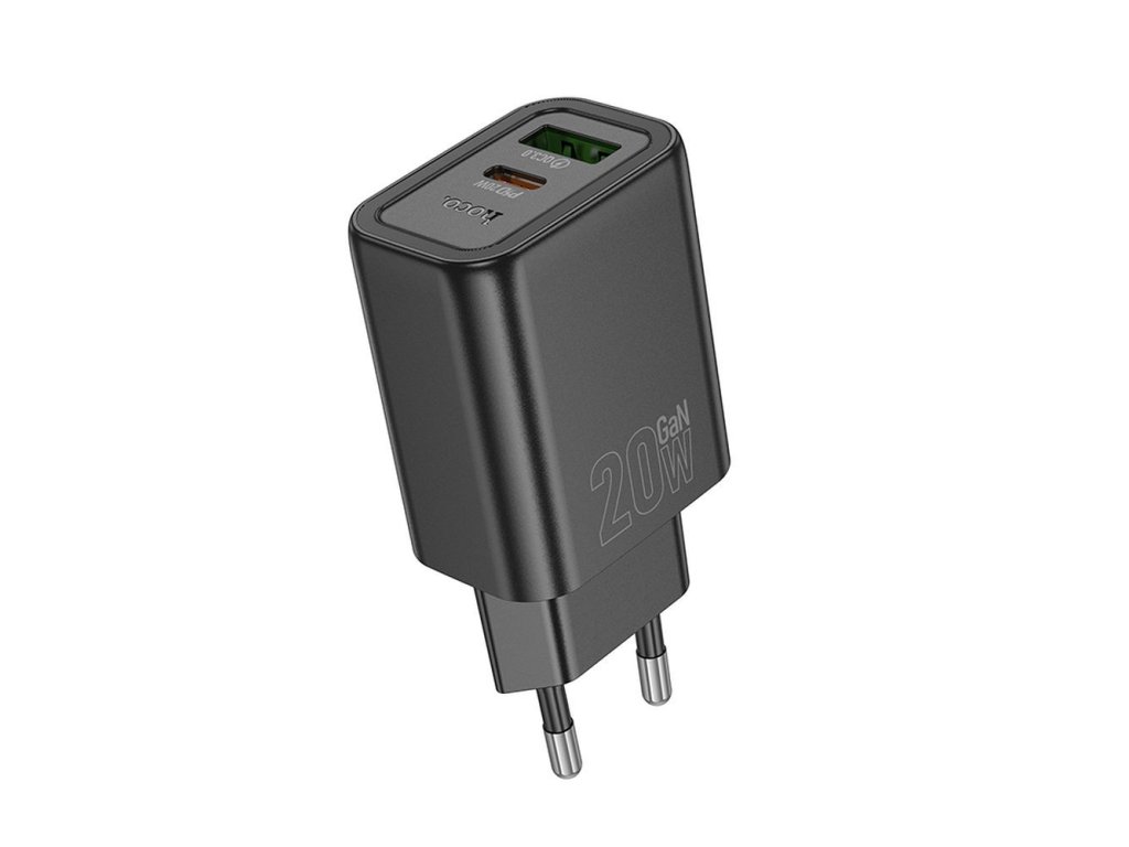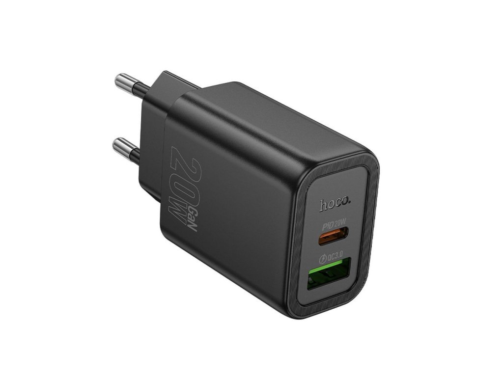 Hoco N61 rychlonabíječka do sítě USB-C (20W) + USB-A (18W) / PD, QC 3.0, FCP, AFC - černá.