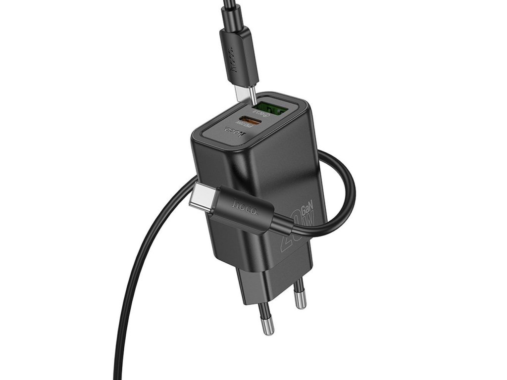 Hoco N61 rychlonabíječka USB-C + USB-A / PD, QC 3.0, FCP, AFC / GaN / kabel USB-C/USB-C - černá.