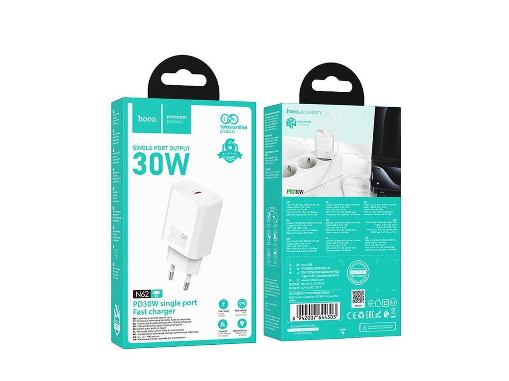 Síťová nabíječka Hoco N62 nabízí rychlost a bezpečnost při nabíjení, nejen, že splňuje nejnovější požadavky na napájení, ale také nabízí univerzální kompatibilitu s různými zařízeními. Díky podpoře protokolů Power Delivery, Quick Charge 3.0, AFC a FCP si můžete užívat extrémně rychlé nabíjení, až čtyřikrát rychlejší než u standardní nabíječky. Šestibodová ochrana navíc zajišťuje úplnou bezpečnost vašich zařízení.