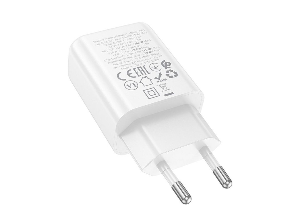 Hoco N63 GaN rychlonabíječka do sítě USB + USB-C 30W / PD, QC 3.0, FCP, AFC / bílá