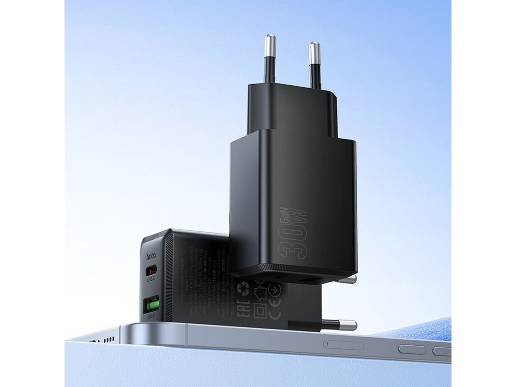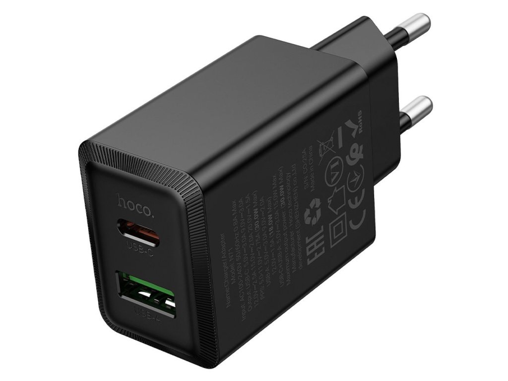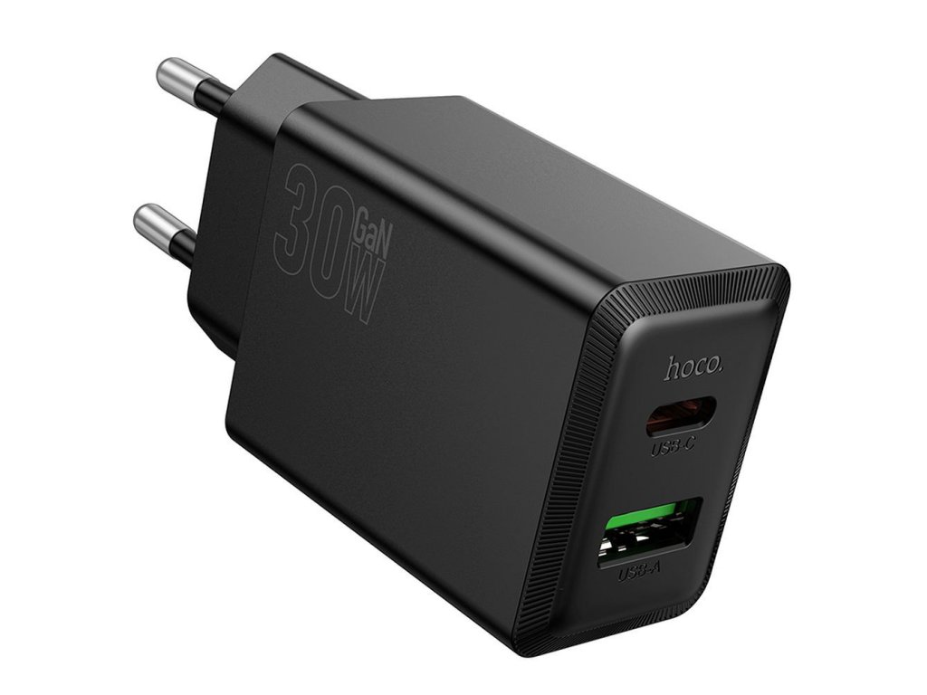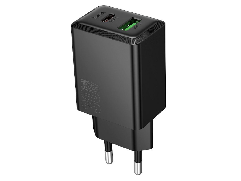 Hoco N71 nabíječka do sítě s výstupem USB-A + USB-C / 30W / PD, QC 3.0, FCP, AFC - černá.
