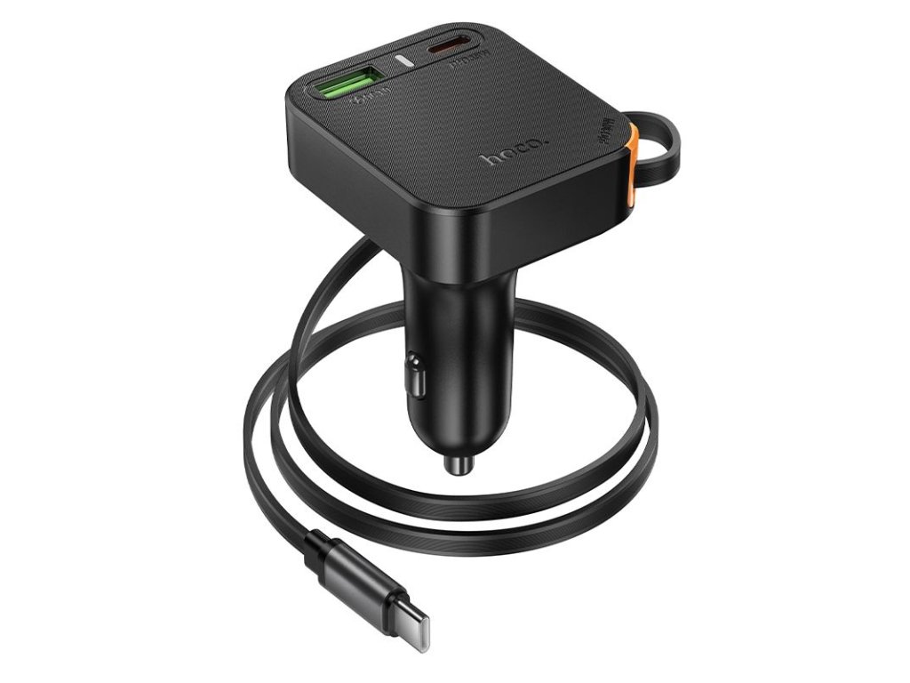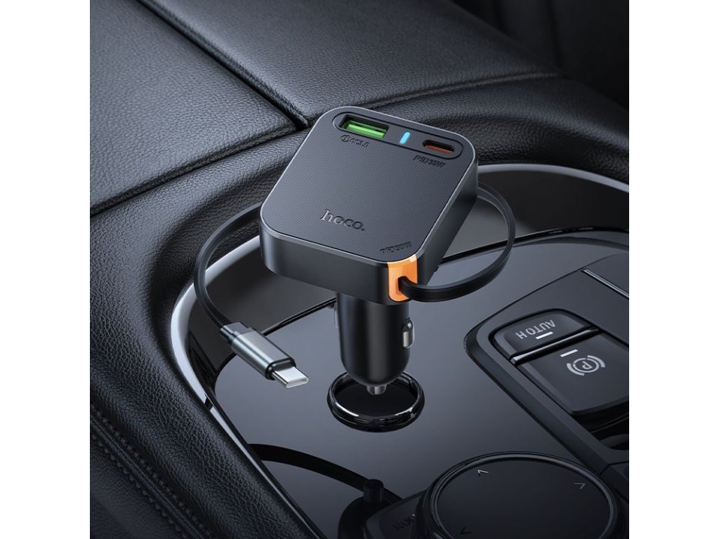 Hoco NZ18 nabíječka do auta USB-C PD + USB-A QC + navíjecí kabel USB-C / 65W - černá.