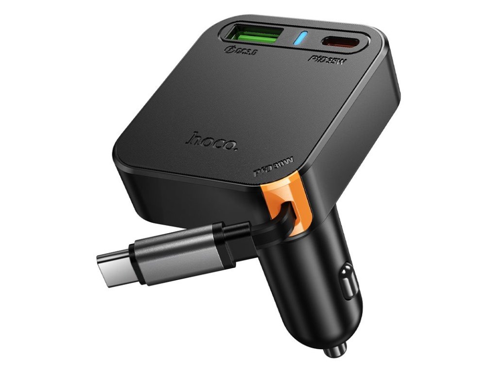 Autonabíječka Hoco NZ18 s vestavěným, prodlužovacím kabelem USB-C je funkčním řešením pro ty, kteří potřebují rychlé a spolehlivé nabíjení na cestách. Je vybavena 65cm zatahovacím kabelem USB-C a dvěma porty – USB-C a USB-A – a podporuje oblíbené standardy rychlého nabíjení, jako je Power Delivery 35 W, Quick Charge 3.0, FCP a AFC, s výstupním výkonem až 65W.