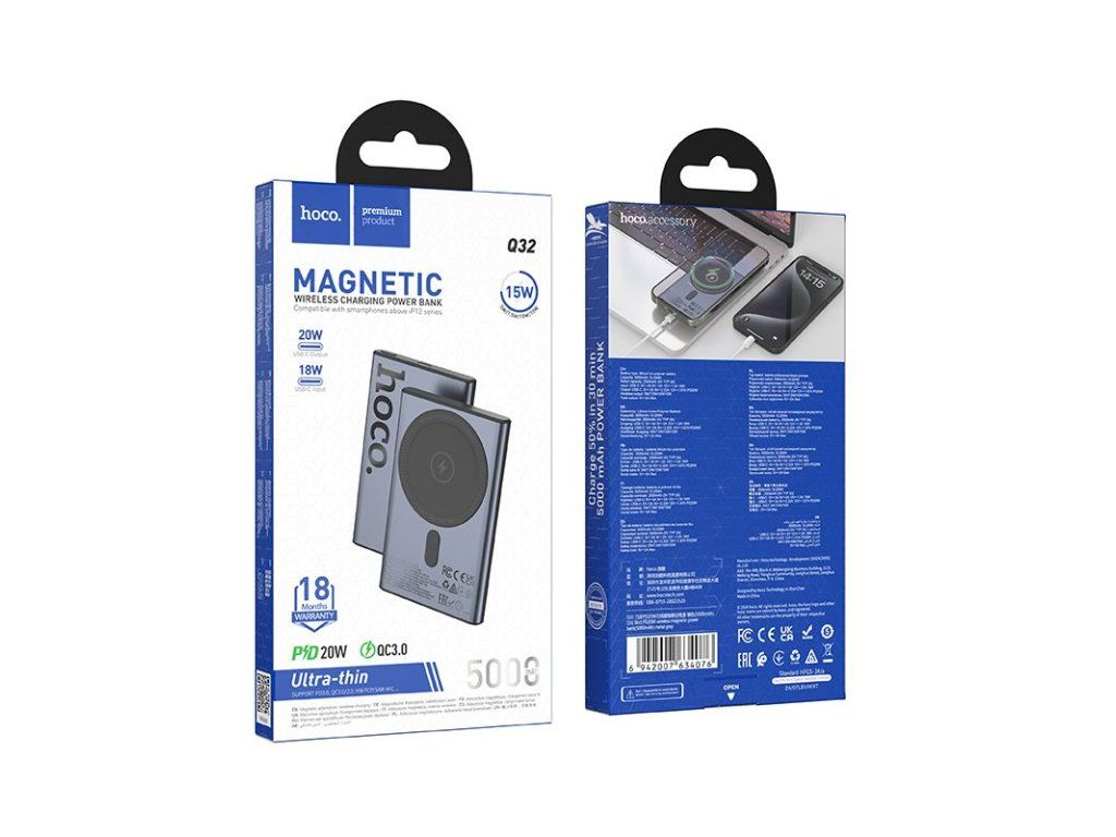 Hoco Q32 Magsafe bezdrátová powerbanka / 20W / 5000mAh / PD / QC / šedá