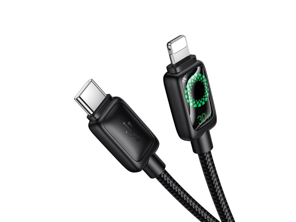 Hoco U146 kabel USB-C - Apple Lightning / 1,2m / 30W / LED displej / černý.