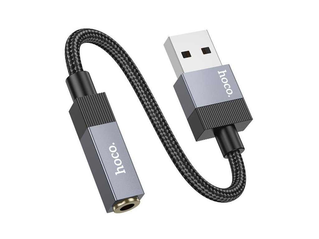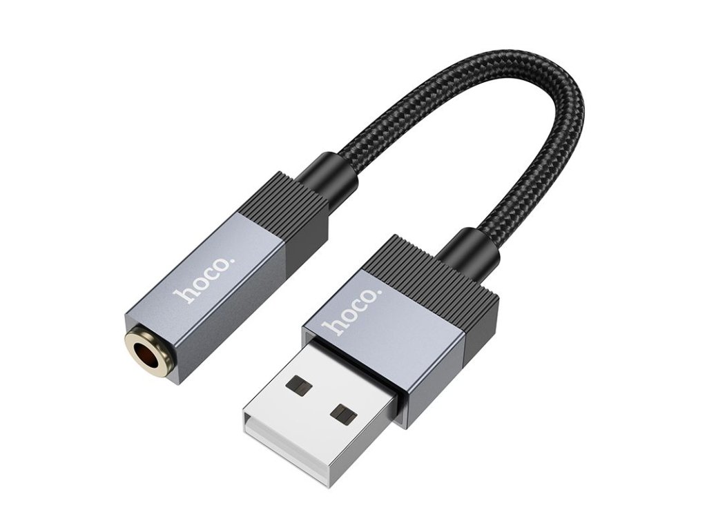 Adaptér Hoco s kabelem USB-A na 3,5mm jack pro sluchátka. Umožňuje připojení sluchátek k vašemu notebooku nebo stolnímu počítači.