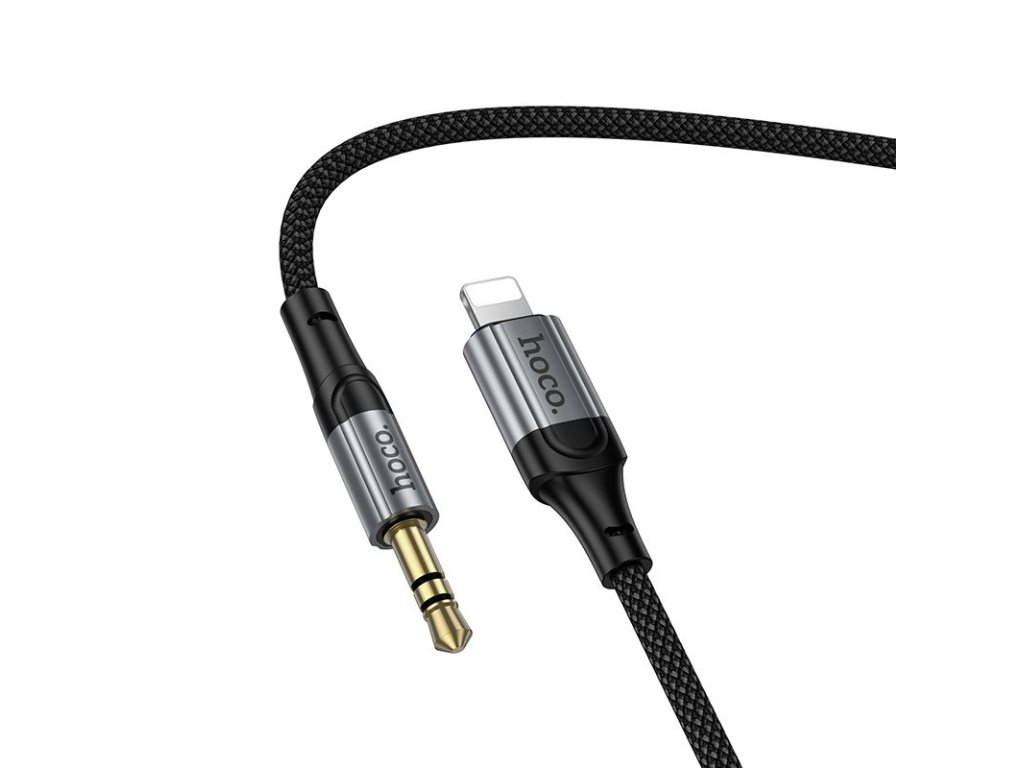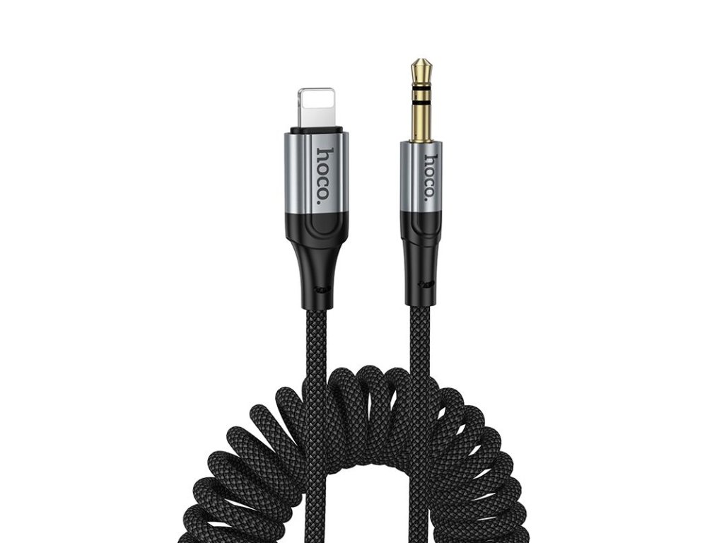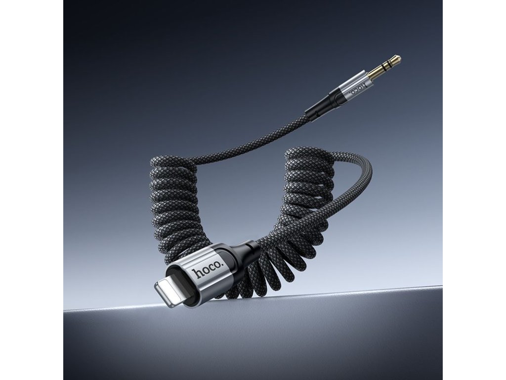 Hoco UPA33A Aux kabel - 3,5mm jack na Apple Lightning / 1,5m / spirálový - černý.